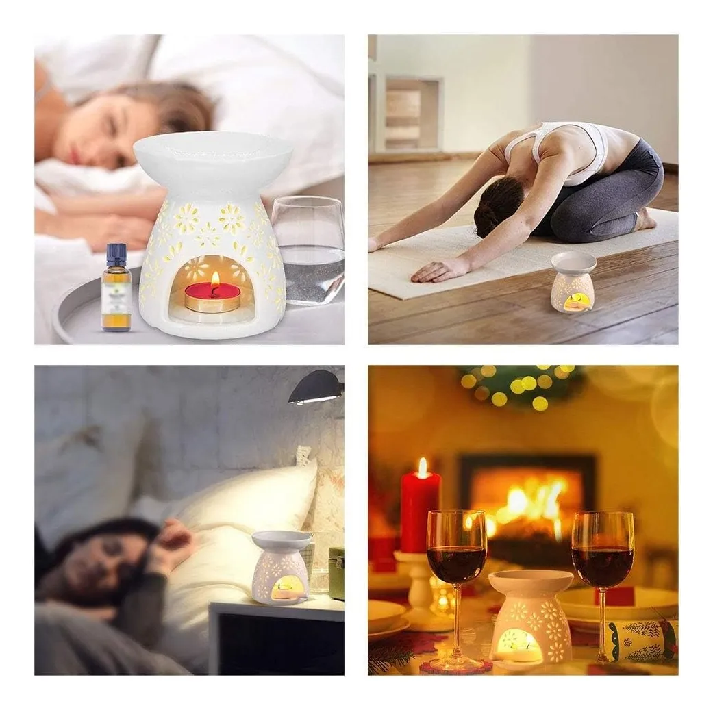 Colocar agua en la parte superior del difusor, mezclar junto al agua aproximadamente 5 a 10 gotitas de esencia del aroma de tu preferencia, colocar dentro del difusor una vela y encenderla.