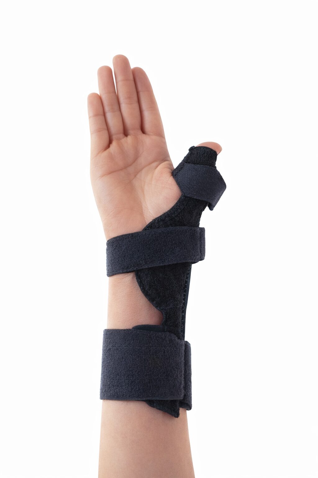Está diseñado para brindar soporte, estabilidad y protección al pulgar y a la zona de la muñeca. Confeccionado en material tipo velour, incorpora una férula de aluminio que ayuda a fijar el dedo pulgar de forma cómoda y segura. Su diseño anatómico permite un buen ajuste a la mano, mientras sus correas con velcro facilitan una sujeción firme y práctica.